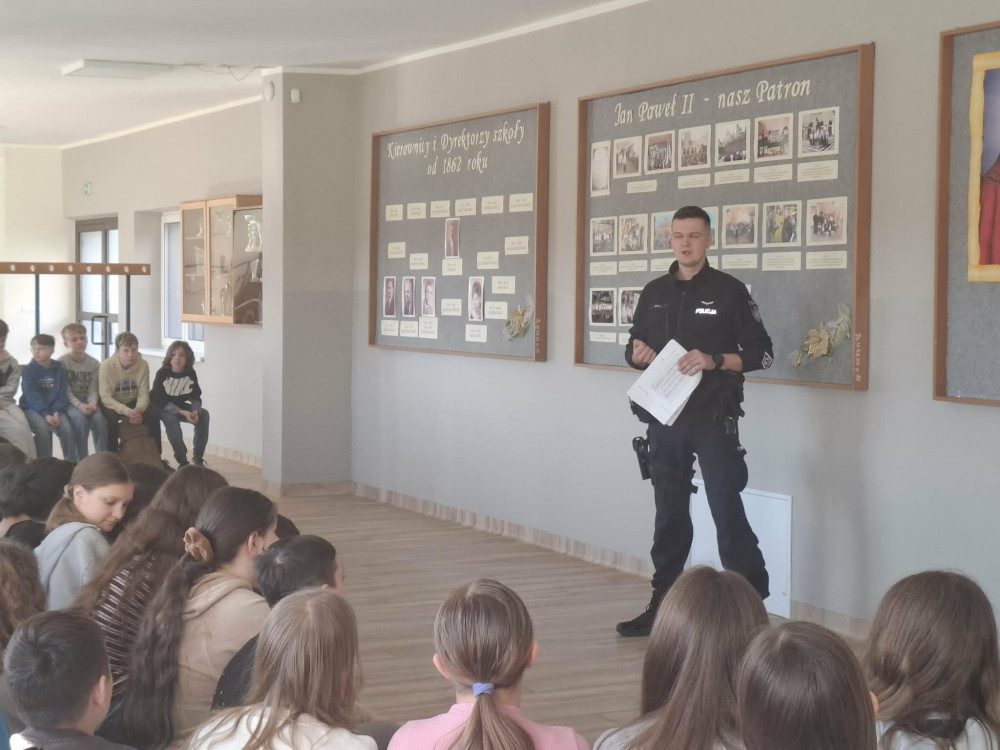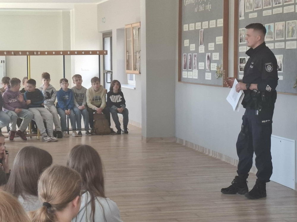Podczas spotkania uczniowie dowiedzieli się, jakie mogą być konsekwencje nieodpowiedzialnego używania telefonu, w szczególności wykonywania zdjęć lub nagrań bez zgody innych osób oraz ich rozpowszechniania. Policjant zwrócił uwagę na kwestie prywatności, szacunku wobec innych oraz odpowiedzialności prawnej.