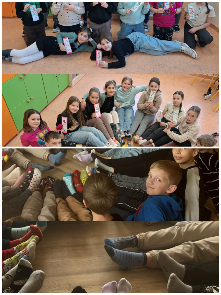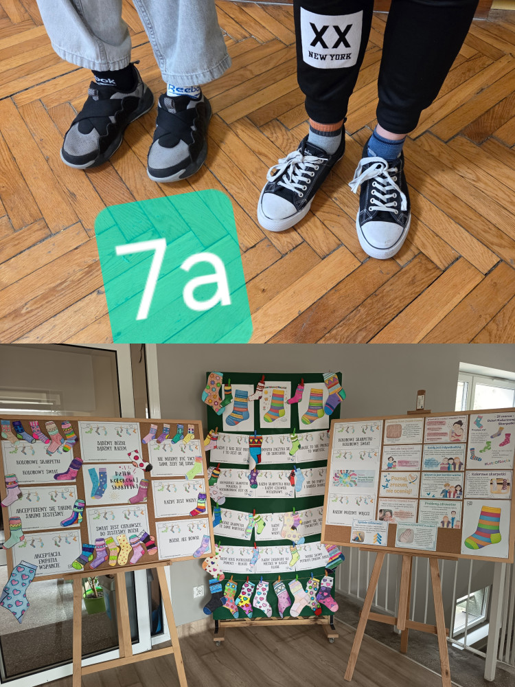 Z okazji Dnia Kolorowej Skarpetki cała społeczność szkolna włączyła się w działania promujące akceptację i różnorodność. To wyjątkowe święto zwraca uwagę na osoby z zespołem Downa oraz potrzebę szacunku i zrozumienia dla każdego człowieka. Przygotowaliśmy kolorową gazetkę szkolną, oglądaliśmy filmy edukacyjne oraz prezentacje, a także uczestniczyliśmy w kreatywnych zajęciach zkolorowankami.