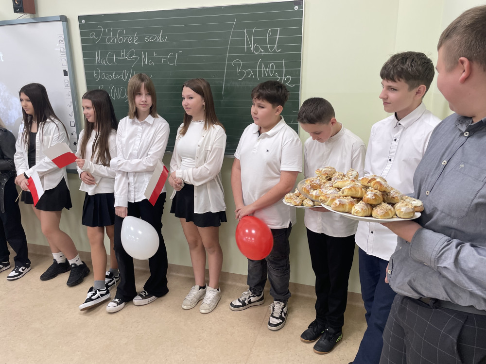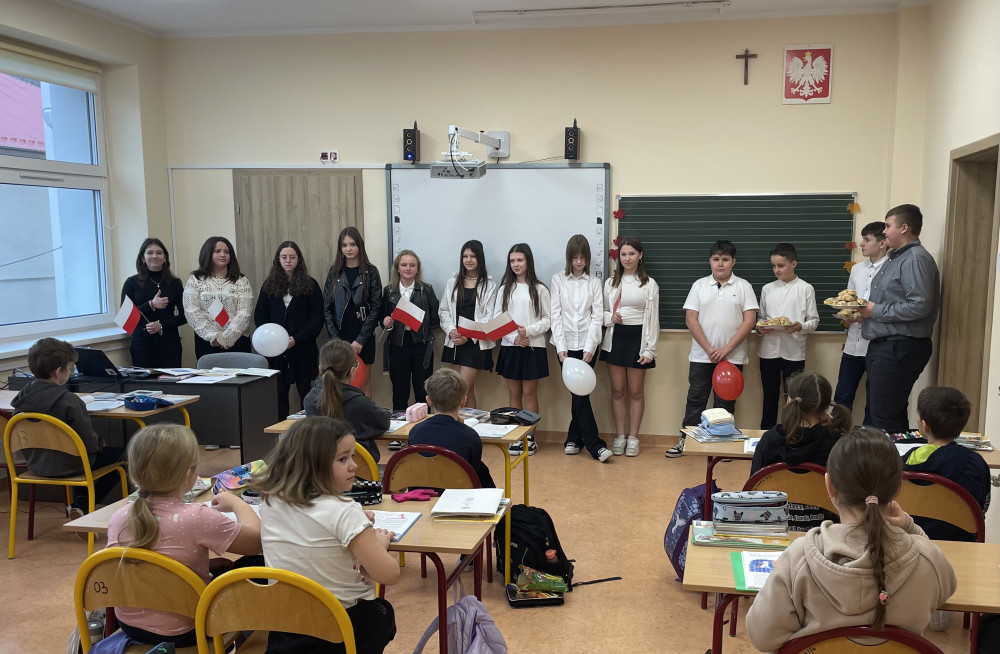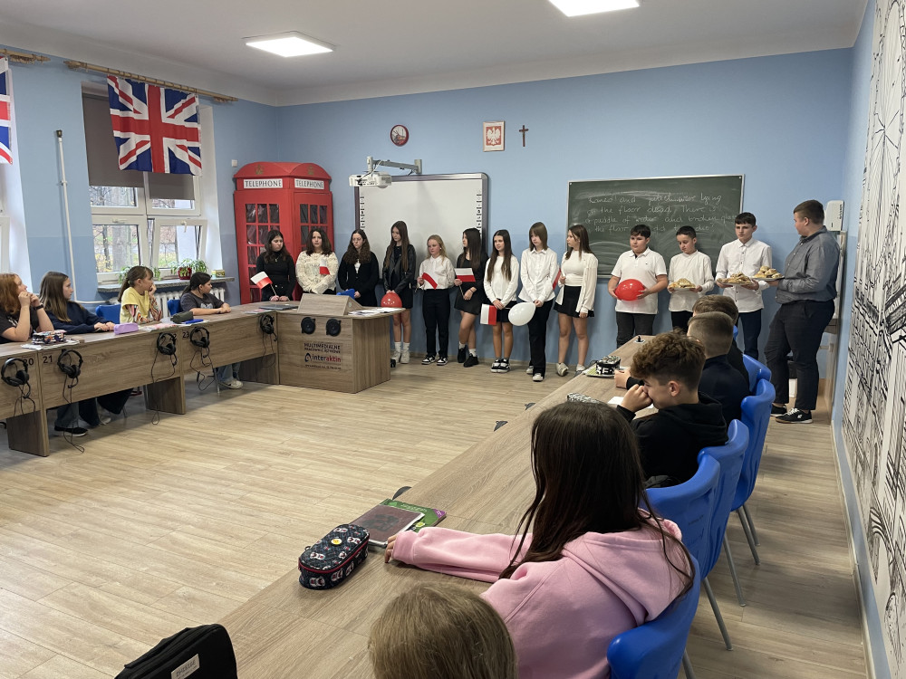 Uczniowie kl.7a przygotowali krótkie wystąpienie z okazji Święta Niepodległości.